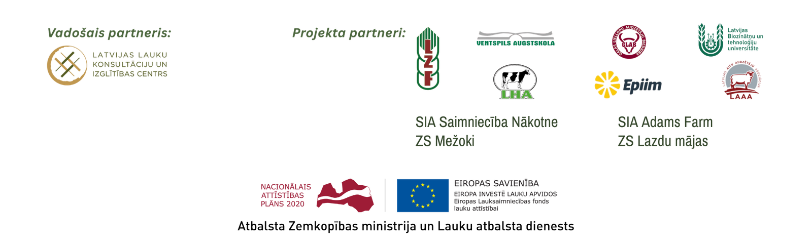 Projekta īstenošanā piedalījās 12 sadarbības partneri – zinātniskās institūcijas, lauksaimnieku organizācijas, saimniecības un nozares eksperti.